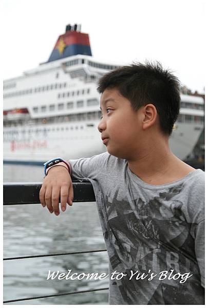 麗星郵輪前一個滿懷旅遊夢想的小孩!