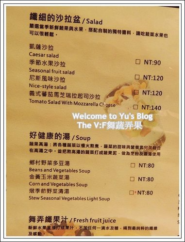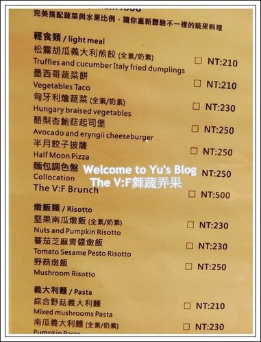 餐點種類為歐陸蔬果料理美食,以單點為主。