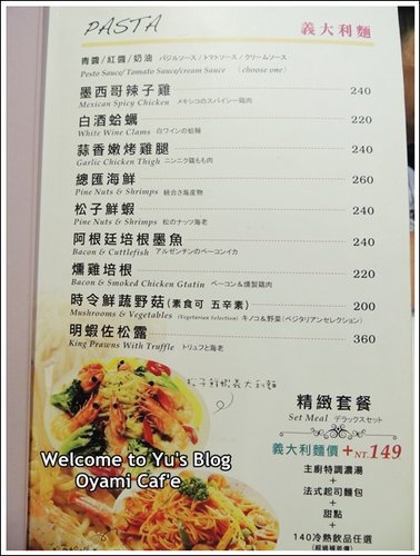 店內有提供義大利麵價格約220-360