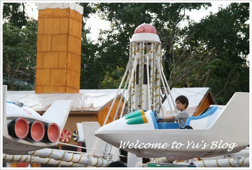 廣場上除設有小朋最愛的旋轉木馬外,還有太空梭喔!