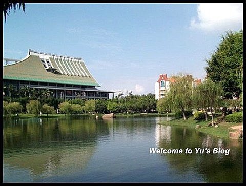 走到校園中心芙蓉湖,這是校園內情侶談情說愛的地方!