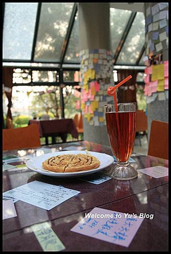逛累了走進湖邊角落的咖啡屋,裡面佈置處處都是便利貼,