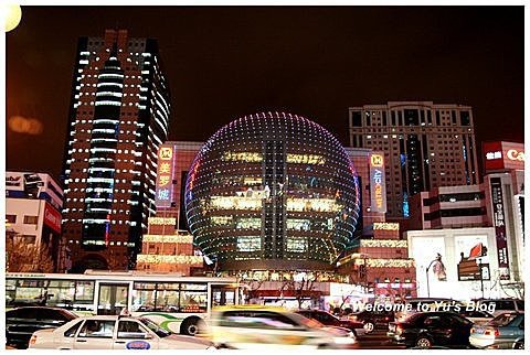 對面巨大的玻璃球是美羅城,