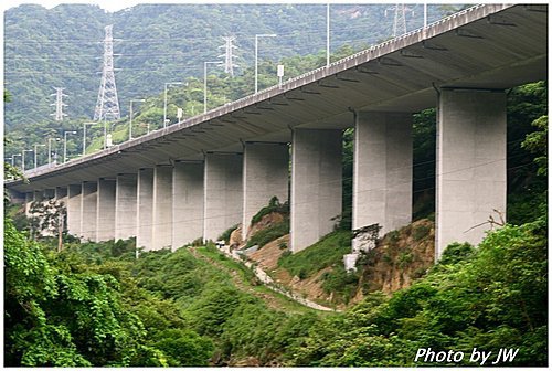 抬頭仰望不遠處北宜高速公路