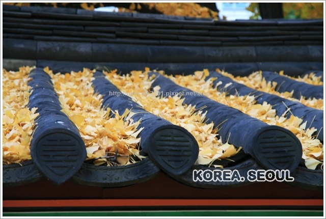 我只注意到這裡銀杏灑落滿地, 不僅如此連屋頂上也是呢 !