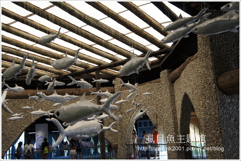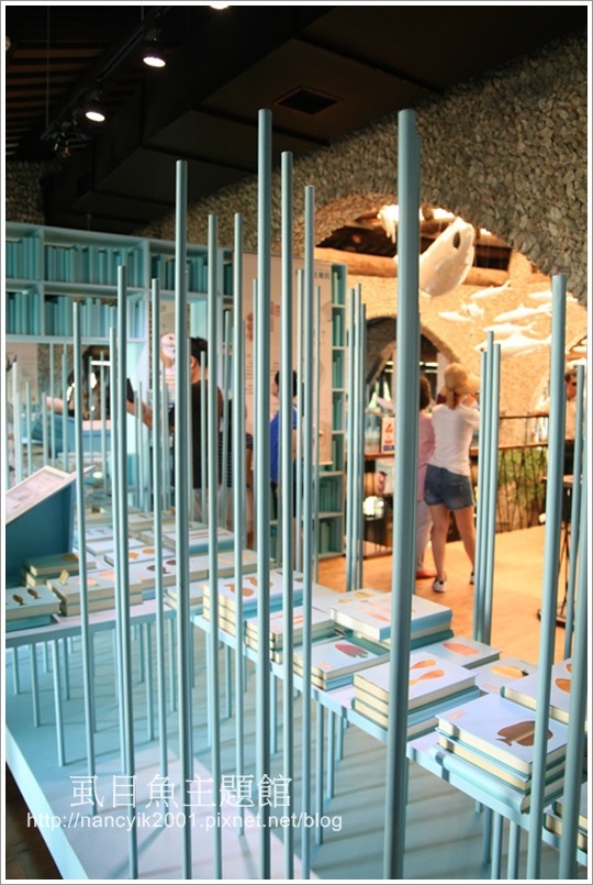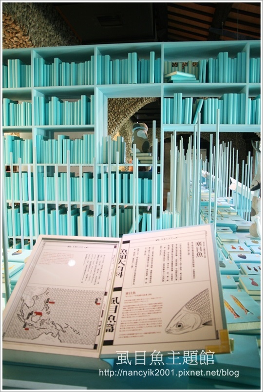 虱目魚主題館整座以圖書館為概念,以半透性海藍色為背景,