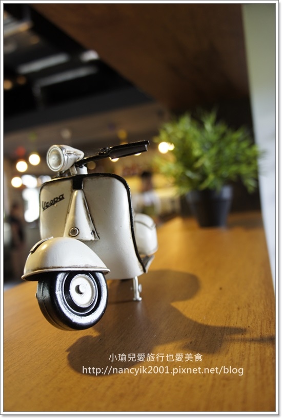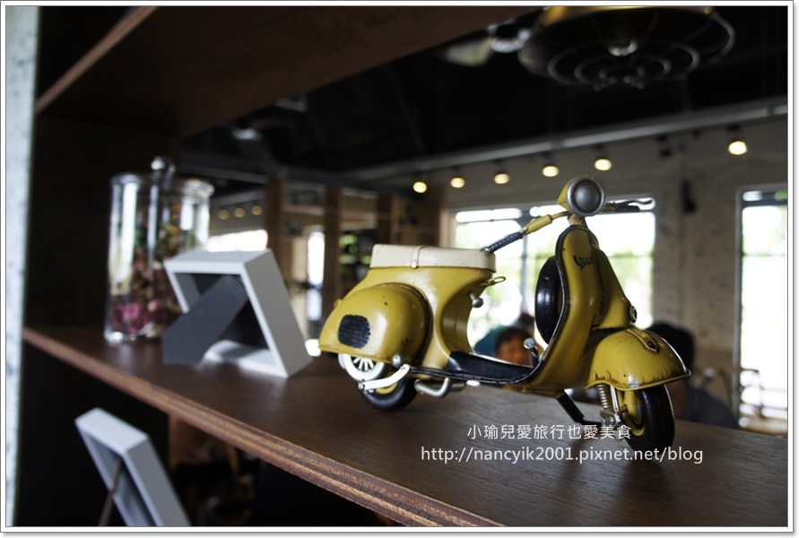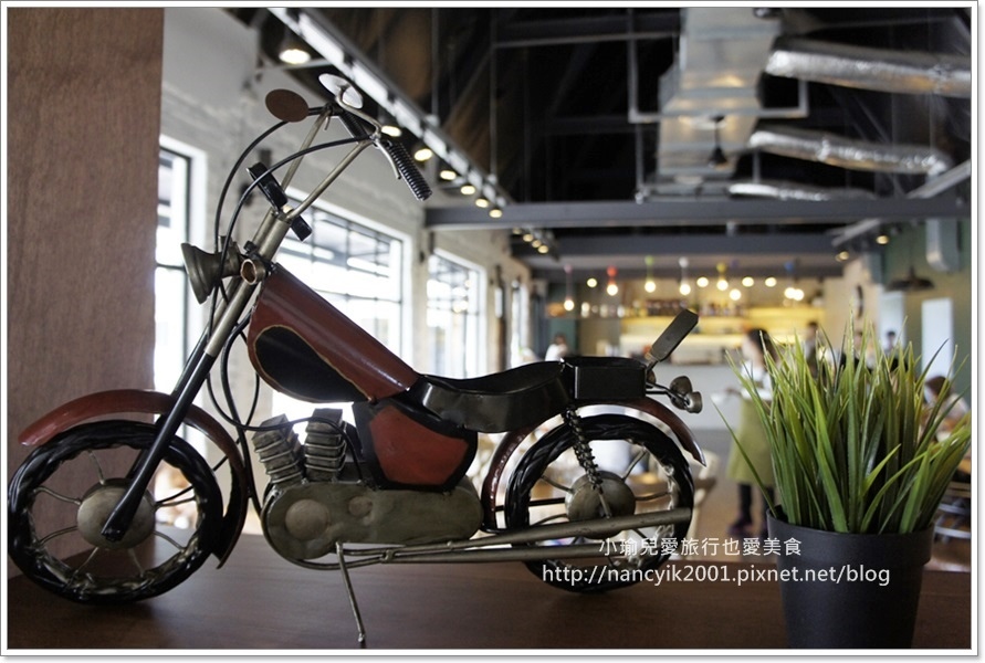有利用依些櫃子來區分座位區, 我發現櫃子擺放許多復古的摩托車模型喔!
