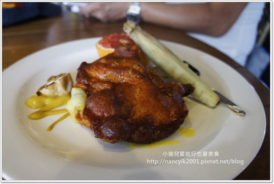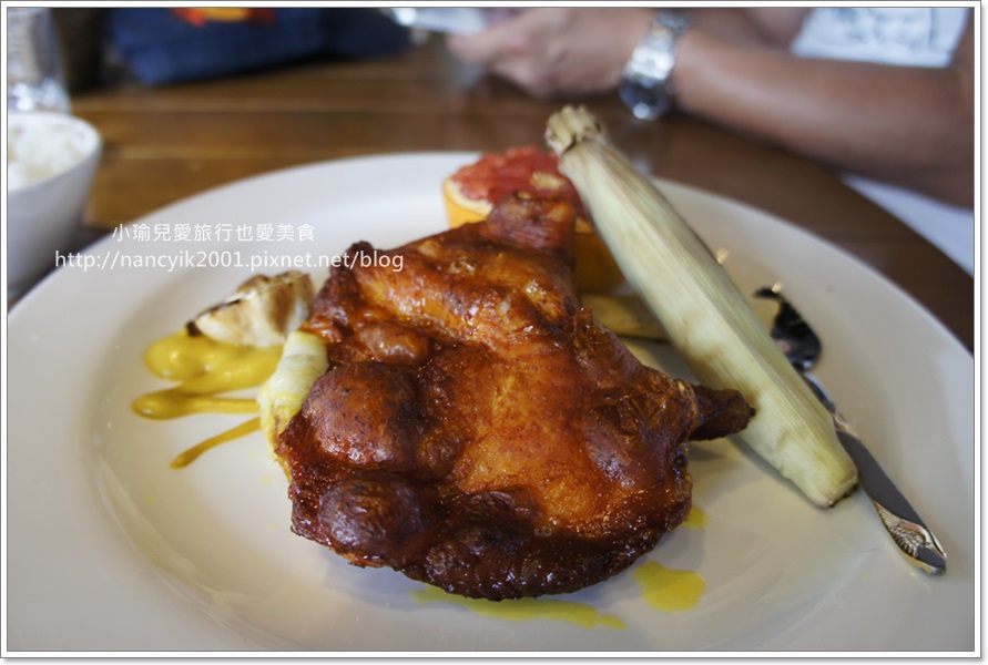 雞腿烤的色澤一端上來就讓人覺得很漂亮, 雞肉外香內嫩的, 吃起來也不會太乾喔!