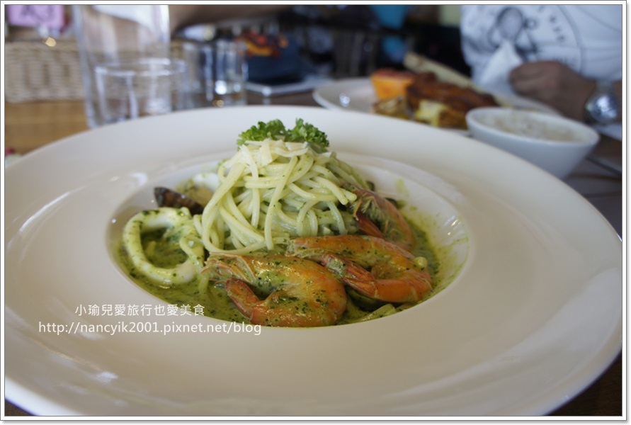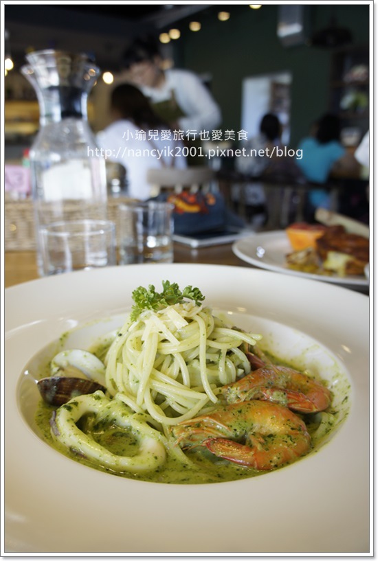青醬的香氣加上不少海鮮, 麵條屬於那種有嚼勁的, 我覺得很好吃呢!