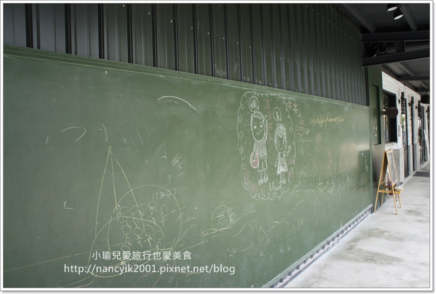 另外要往另一邊的餐廳路上還有一個很大的黑板, 小朋友也可以在這裡塗鴉喔!
