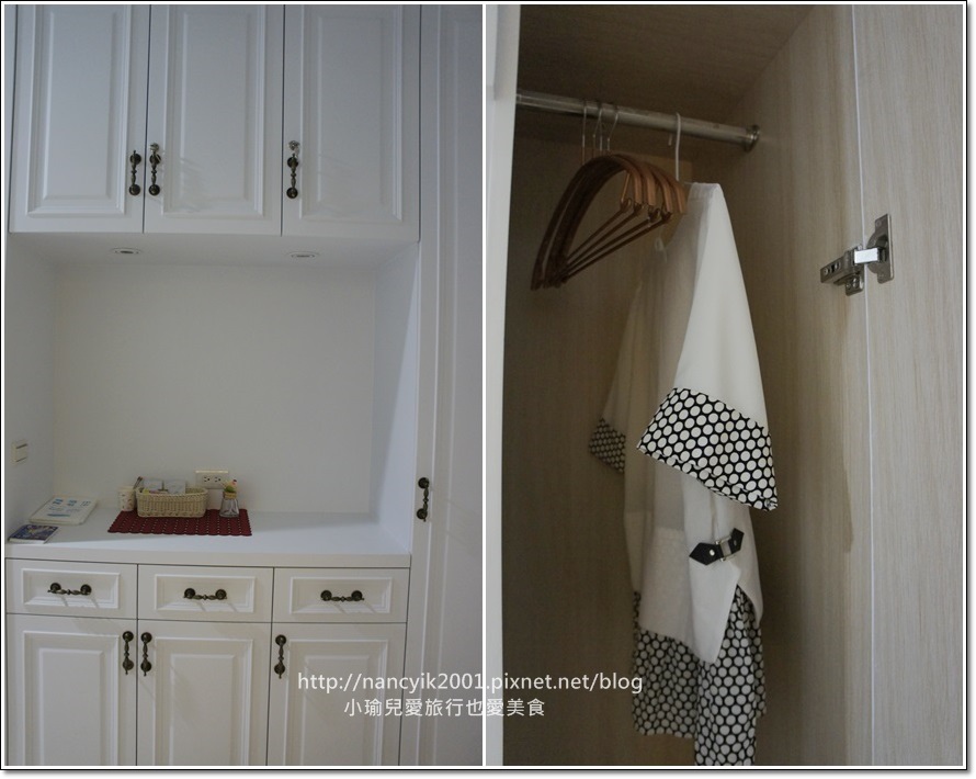房間入口這裡有一個白色的櫃子....這都和床邊的小矮櫃一樣抽屜都可以打開的喔!