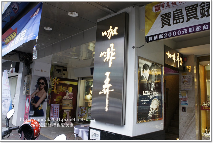樓下是寶島眼鏡和寶島鐘錶,反正就從這兩家店中間的樓梯走上去,咖啡弄就位於二樓。