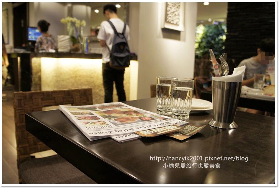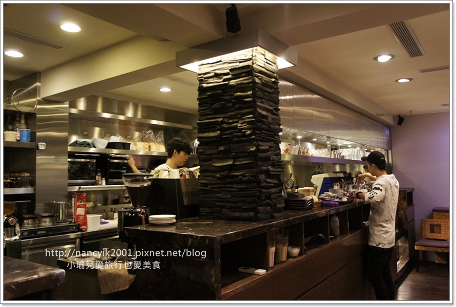 中間為收銀台兩側就是座位區,我們二個人被安排在靠窗的四人座位區。