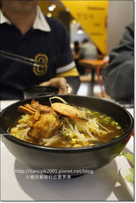 韓文或許大多數人都看不懂,不過兩旁的圖案大家一看就知道~是拉麵啦!!