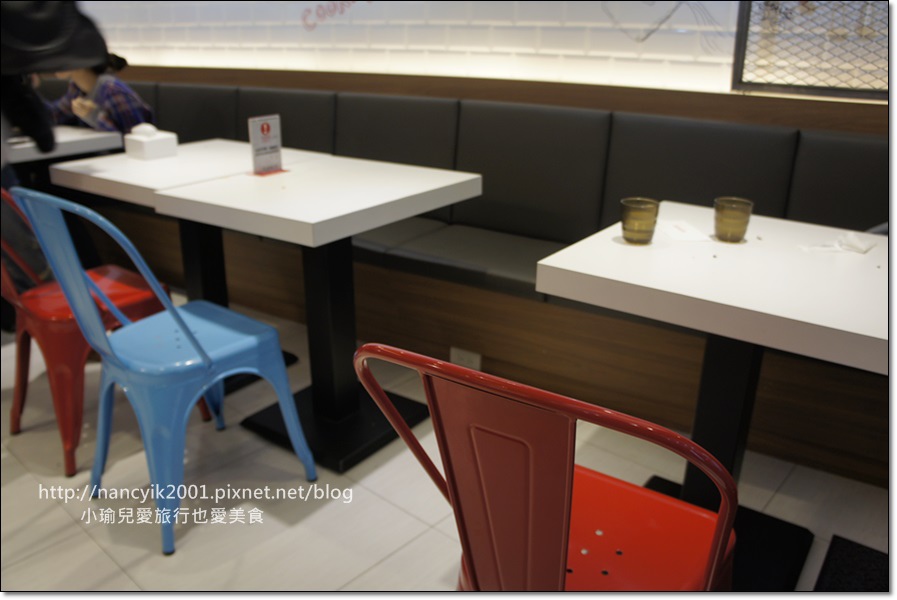這裡寸土寸金雖說店面不大,但也也約近有30個座位,白色搭鮮豔紅色亮麗設計的裝潢風格,