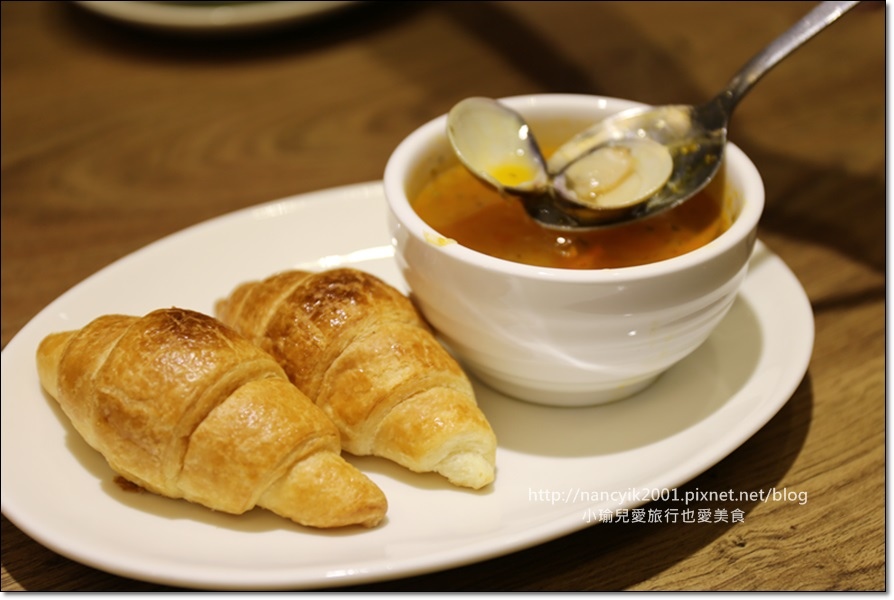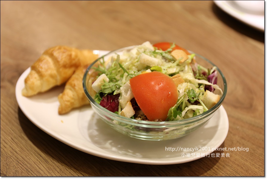 除了主餐都另外附上今日湯品、 可頌麵包 、綜和生菜沙拉以及飲料,