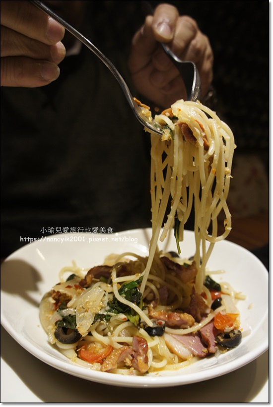 蒜頭爆香炒的義大利麵,一端上來就傳來陣陣香氣呢!