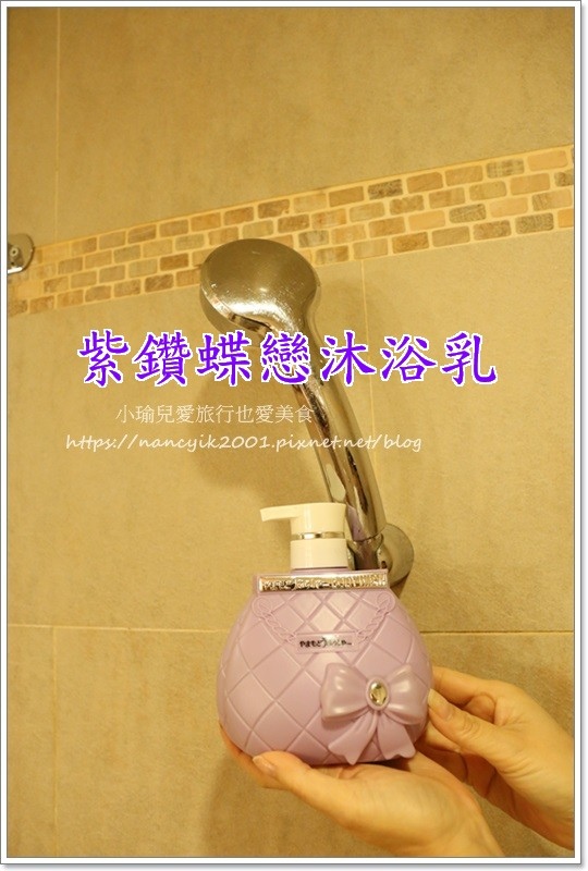 由左至右依序為藍鑽晨曦沐浴乳 、 粉鑽香香沐浴乳、紫鑽蝶戀沐浴乳,
