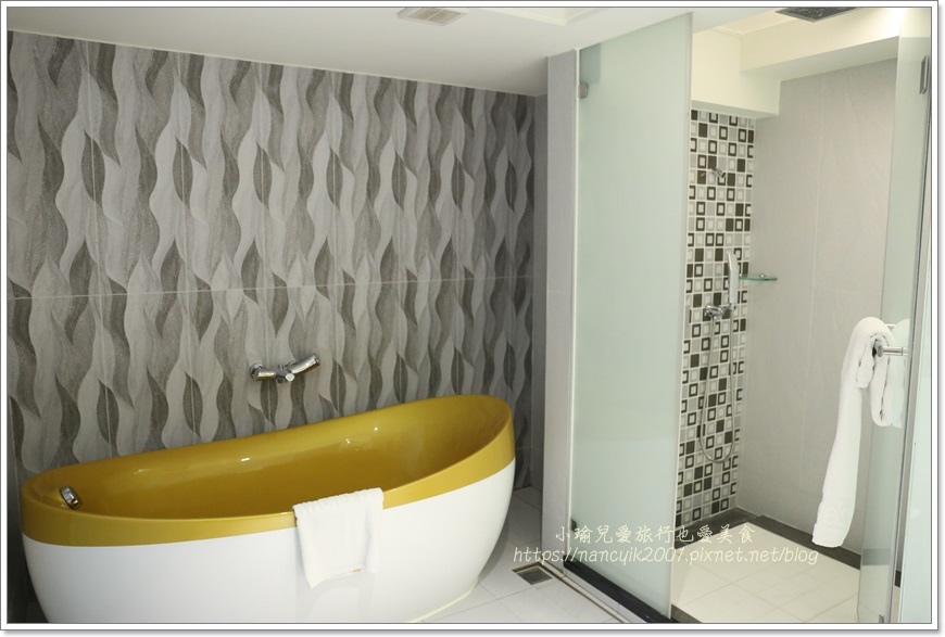 浴缸雖說不大但很有設計感的造型令人印象深刻,