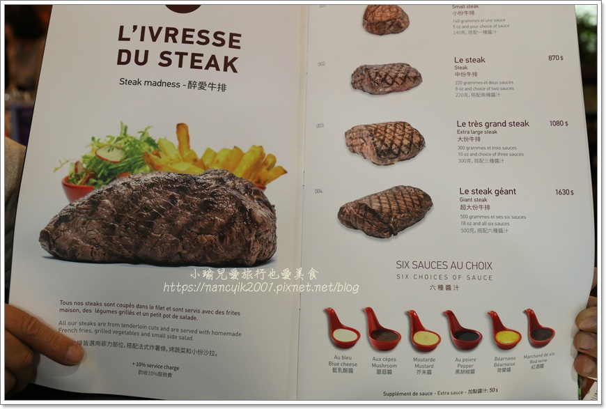 這裡的牛排依大小不同分為小、中、大以及超大份的四種 ,