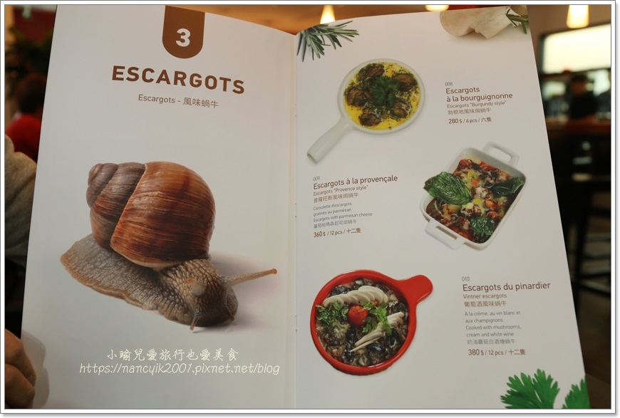 還有法國小吃、風味鍋牛、法國特色菜、烤物、海鮮和甜點....等。