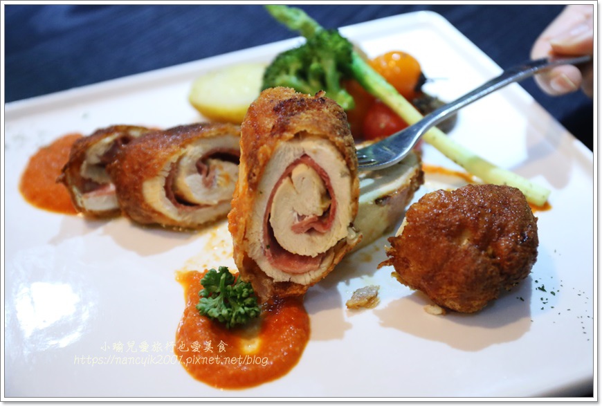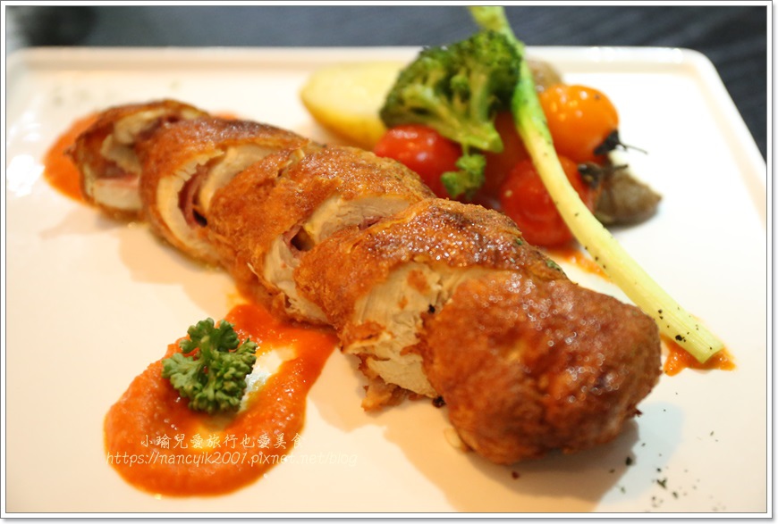 雞胸肉內包裹著乳酪與火腿,原本擔心會像一般吃到的雞胸肉會有點柴,