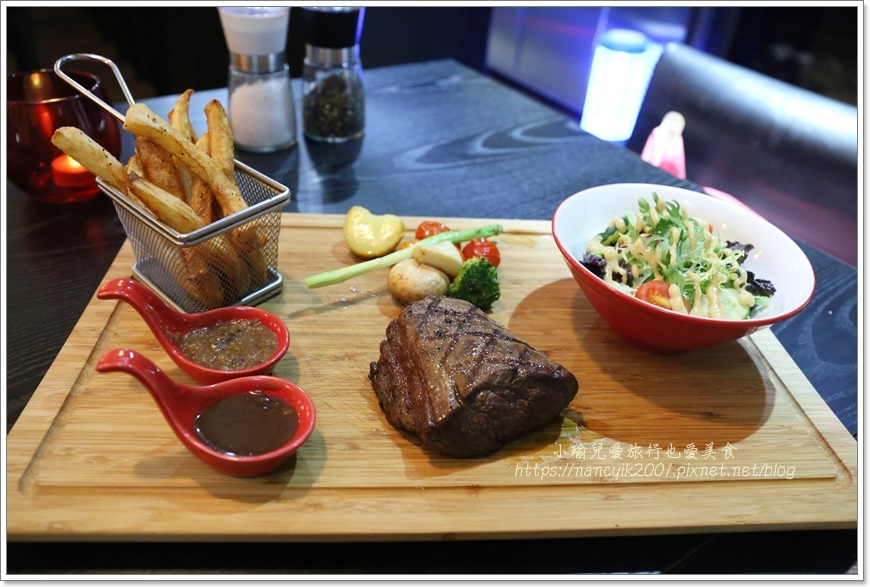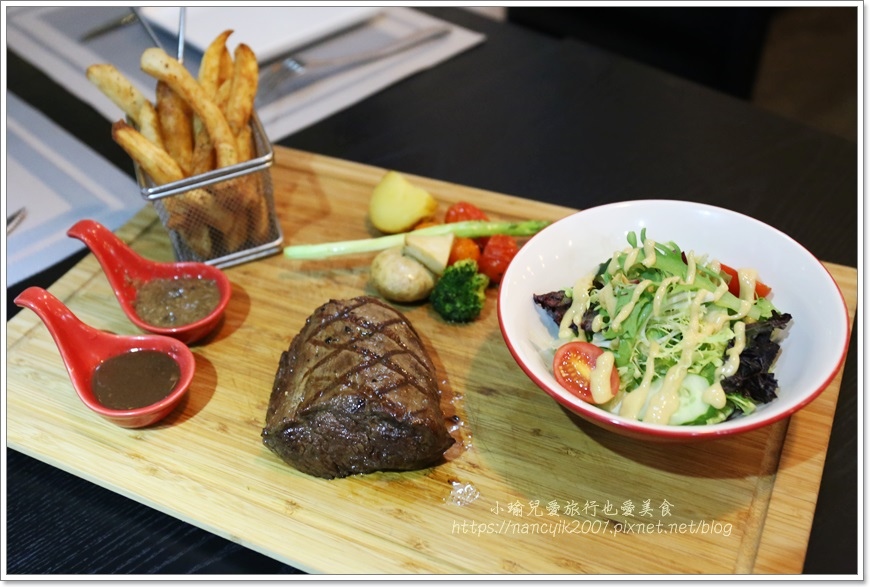 牛排都會附上法式炸薯條、蔬菜和生菜沙拉,一大盤端上來也是很繽紛。