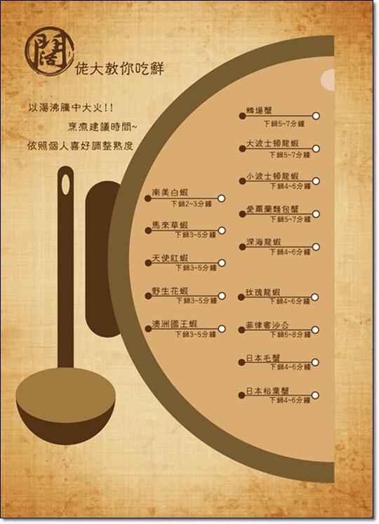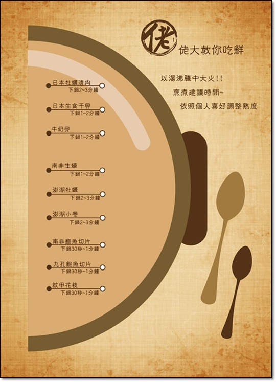 建議每一種海鮮下鍋大約幾分鐘就可嚐到最鮮美的滋味呢!