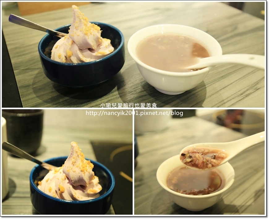 藍莓優格冰淇淋美味可口,甜湯是營養滿分的八寶粥。