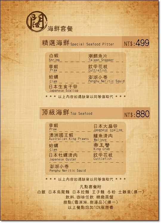 以上只是一部份菜單