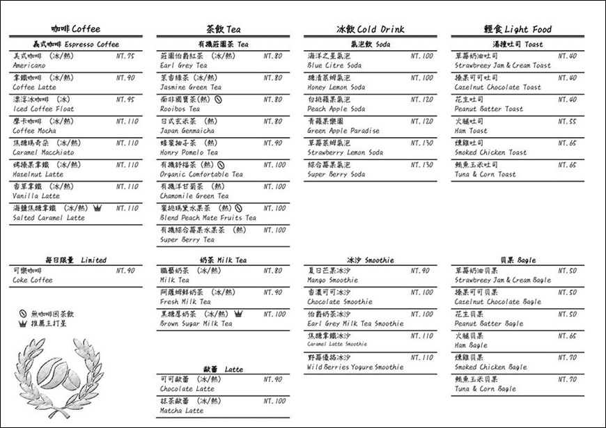 MENU提供大家參考,有咖啡、茶飲、奶茶、