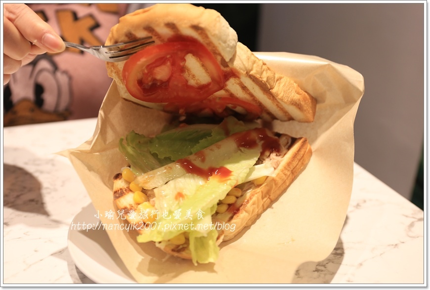 內餡則有鮪魚、生菜、番茄、玉米粒佐以番茄醬,