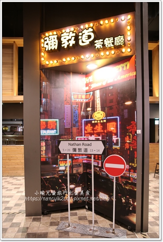 【彌敦道茶餐廳 板橋誠品店】門口這裡有個香港街景招牌,