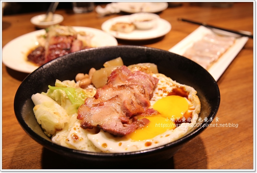 然後淋上店裡特色鹵水醬油,吃的時候先要弄破蛋汁