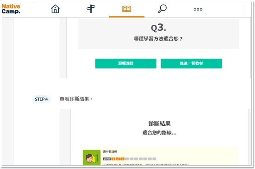 NativeCamp可協助診斷再推薦最合適的教材呢!