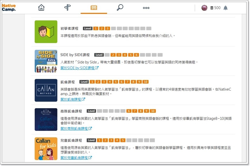 在NativeCamp有依據「用戶評價」,「課程數」和