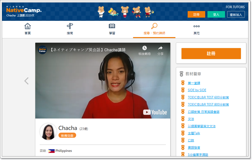 我想這也是選擇參考,另外一旁也有教材徽章與老師特色。