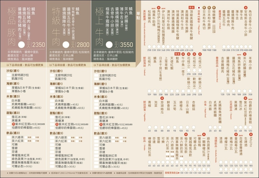 我們選擇上等牛肉雙人套餐 1980元+10% 另外再單點厚牛舌398元+10%