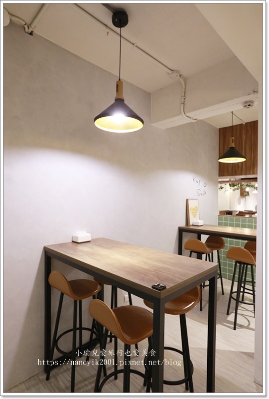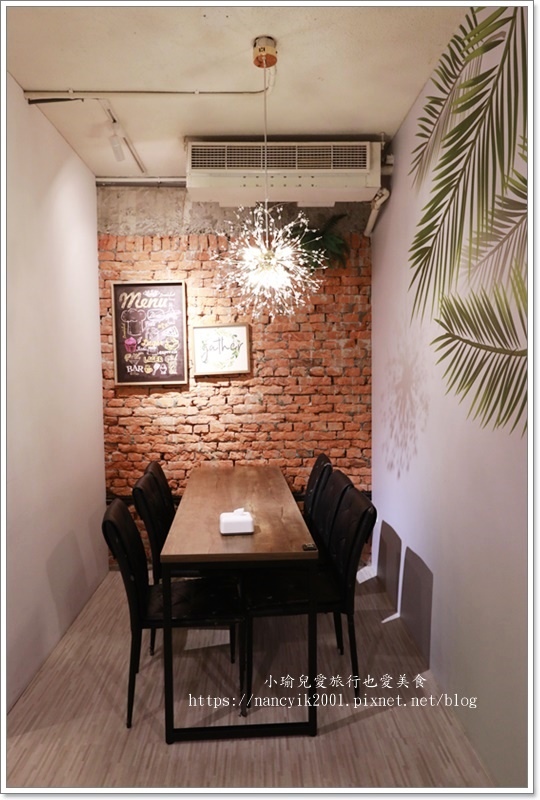 同樣牆上也有綠葉來裝飾,另外也有高腳椅區,