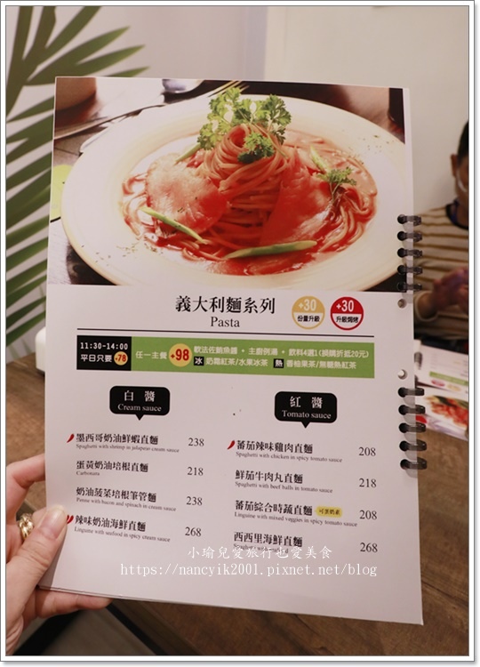 義大利麵有白醬、 紅醬、 青醬 、清炒與特別醬四種選擇,