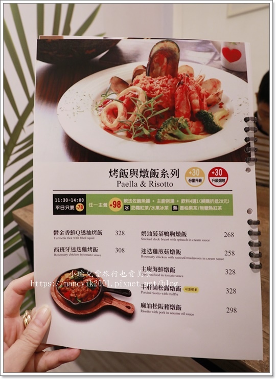 餐點選擇不少有是義大利麵、烤飯與燉飯、