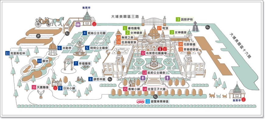 園區建築雄偉優雅而富麗,讓遊客來到此有宛如置身歐洲的場景。