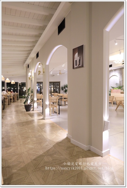純白色系為主搭配木頭桌椅與燈飾,