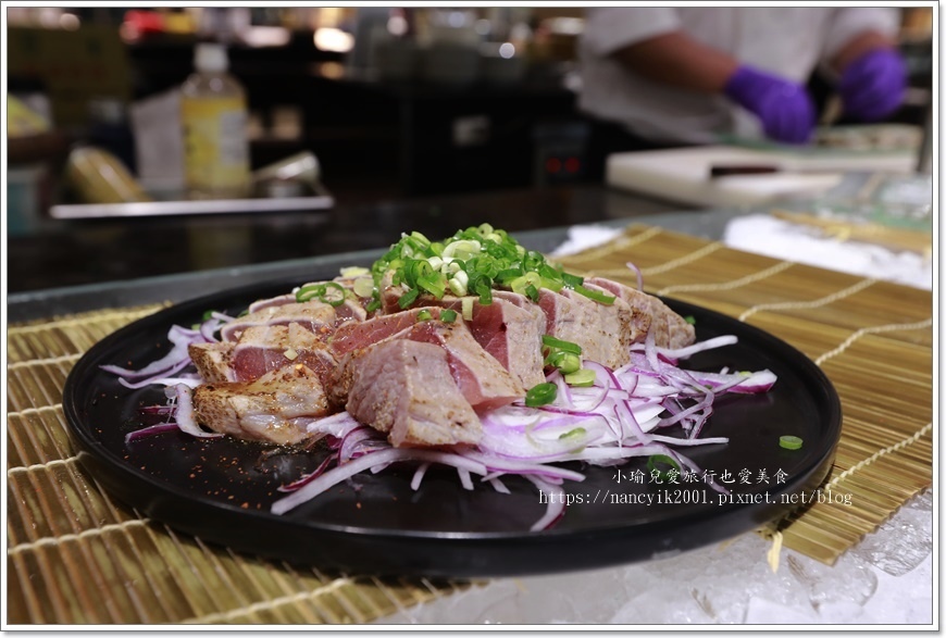 炙燒鮪魚生魚片,經過炙燒的生魚片更香更美味。