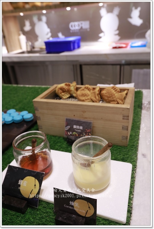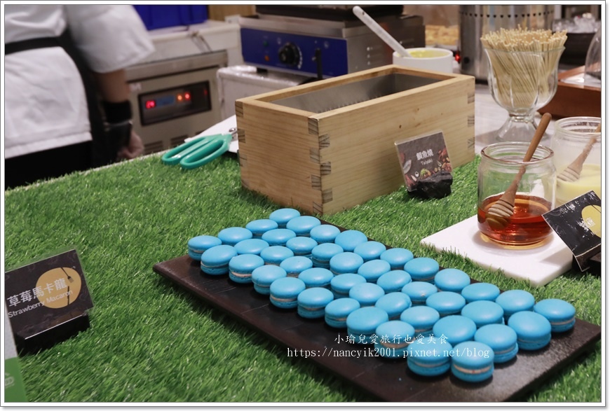 草莓慕斯、馬卡龍、鯛魚燒、棉花糖、杏仁奶油蛋糕、