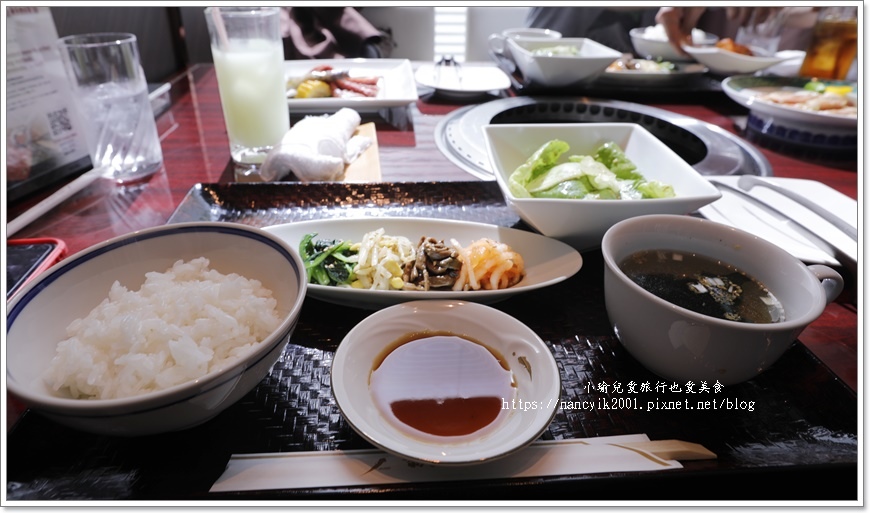 還有一碟泡菜、熱湯、生菜沙拉和白飯,