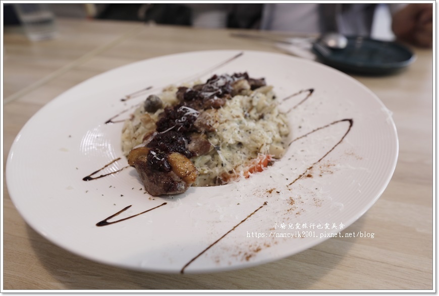 燉飯口感軟中帶Q,搭配極致濃郁的松露香,
