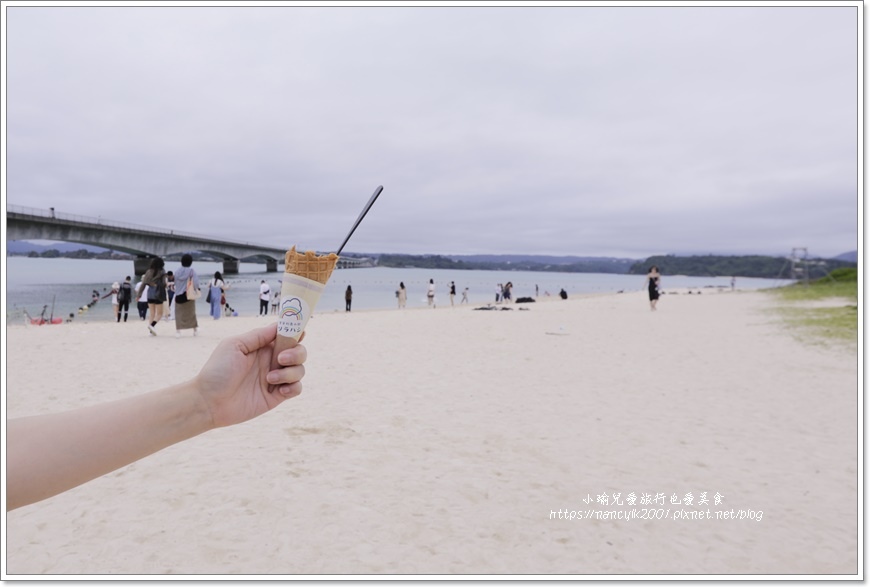 長達數百公尺的純白沙灘在古宇利大橋的左右兩側延伸開來,