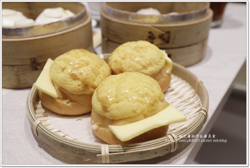 芋香蘿蔔仔、豬仔流沙包、千層叉燒酥、三小菠蘿油、白灼時蔬、