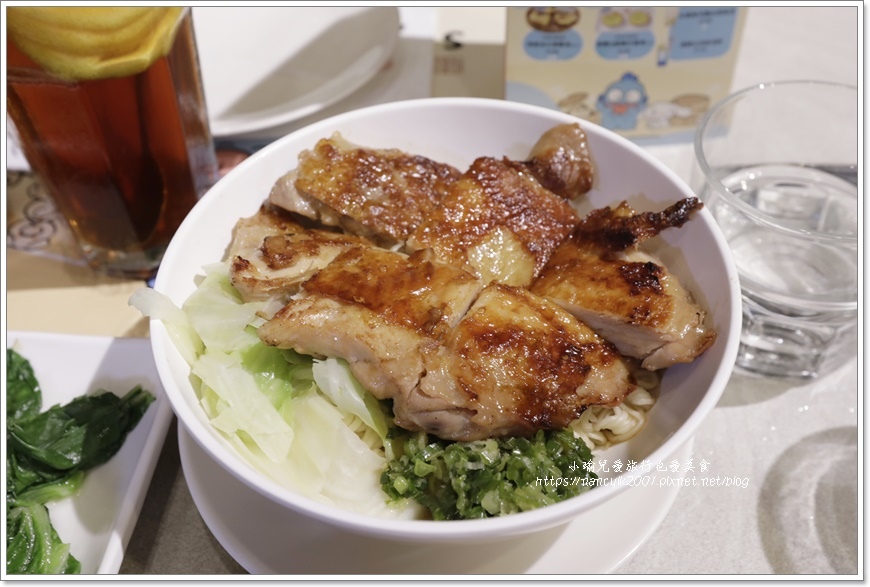 而撈麵就是拌麵。撈丁上面有一大塊切塊的去骨炸雞腿,